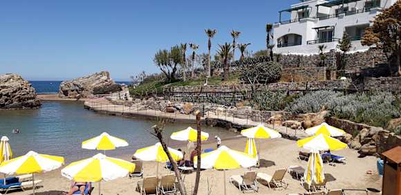 Meeresbucht - rechts die Sea-View-Bungalows