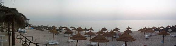 Strand um 5 Uhr07/2012: Blick von der Strandbar aus auf den Hotelstrand und das Meer