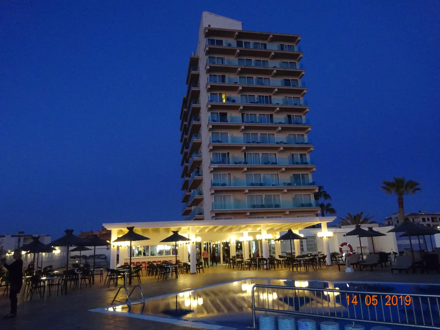 Aussenansicht vom Pool aus beim Einnachten