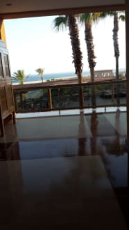 LobbyBlick von Lobby auf Außenanlage und Meer