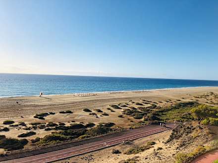 Strand (öffentlich) nur durch einen kleinen Rad- und Fußweg getrennt
