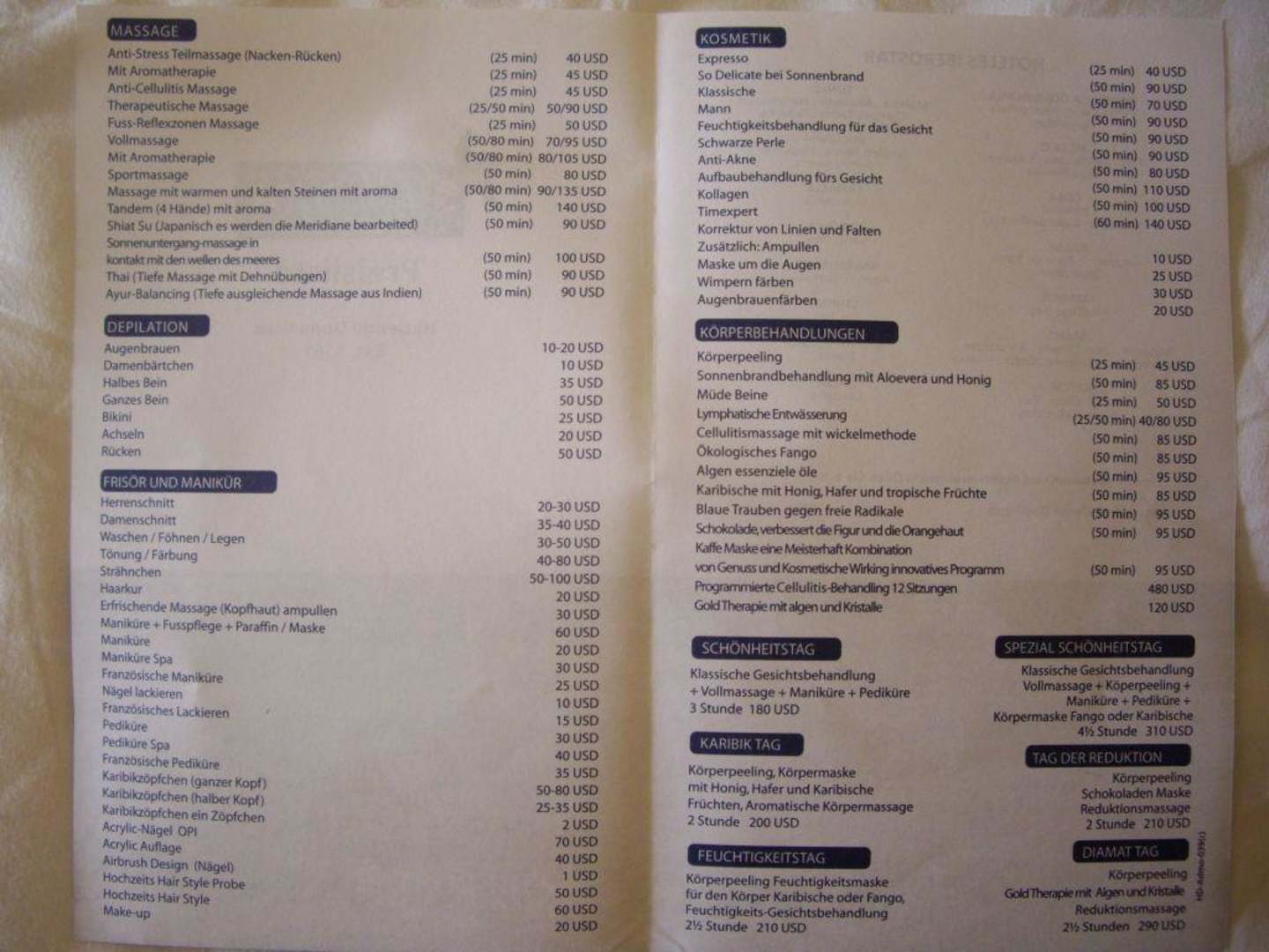 Spa Preisliste