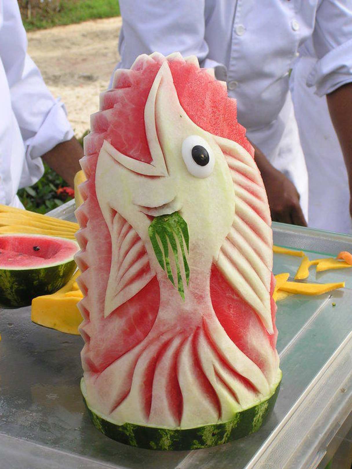 An einem Nachmittag wurden am Pool Tische aufgebaut und die Köche haben gezeigt, wie sie die schönen "Schnitzereien" aus Lebensmitteln herstellen.
