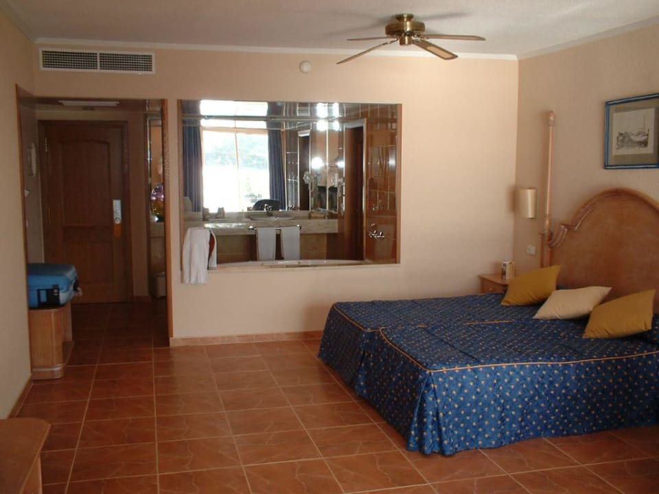 Offenes Bad bzw. Executive Suite, Zimmer Nr. 1204Hier sieht man wie hell, schön und groß die Executive Suiten mit ihren ca. 55 m² sind. Seitlich das Doopelbett, dahinter in der Mitte der "legendäre" Whirlpool, rechts geht's zur Dusche und WC und links ist die Zimmertüre...