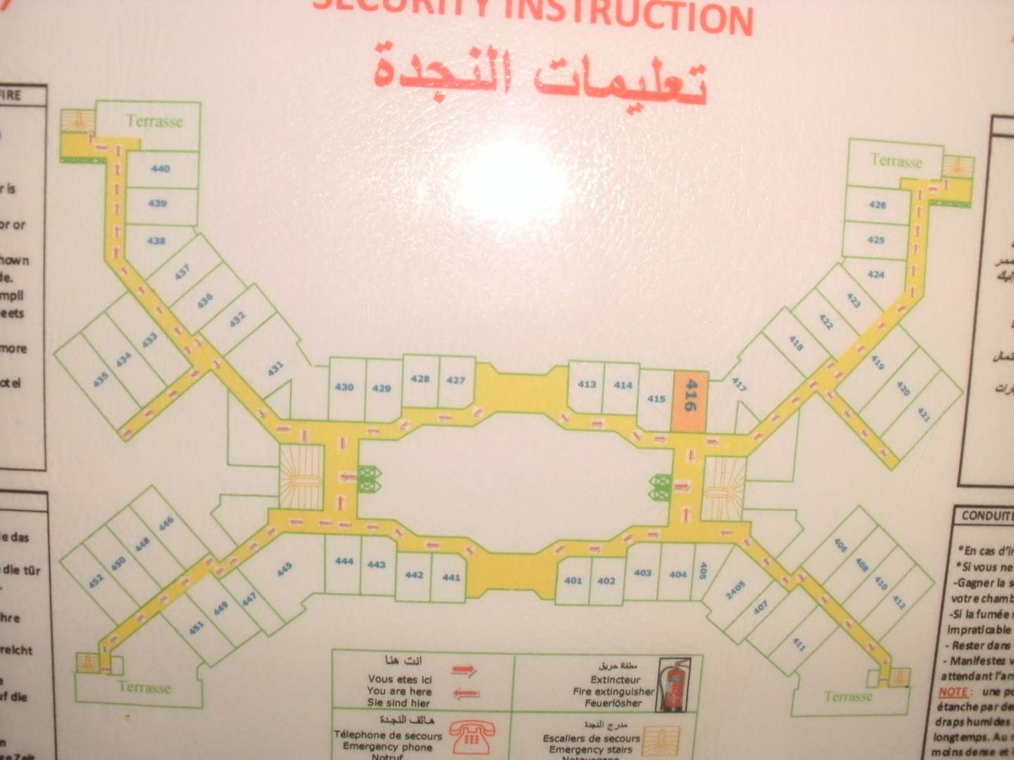 Zimmerlageplan des 4. StockesDie Zimmer vorne (da wo 416steht) habendirekten oder Seitlichen Meeresblick