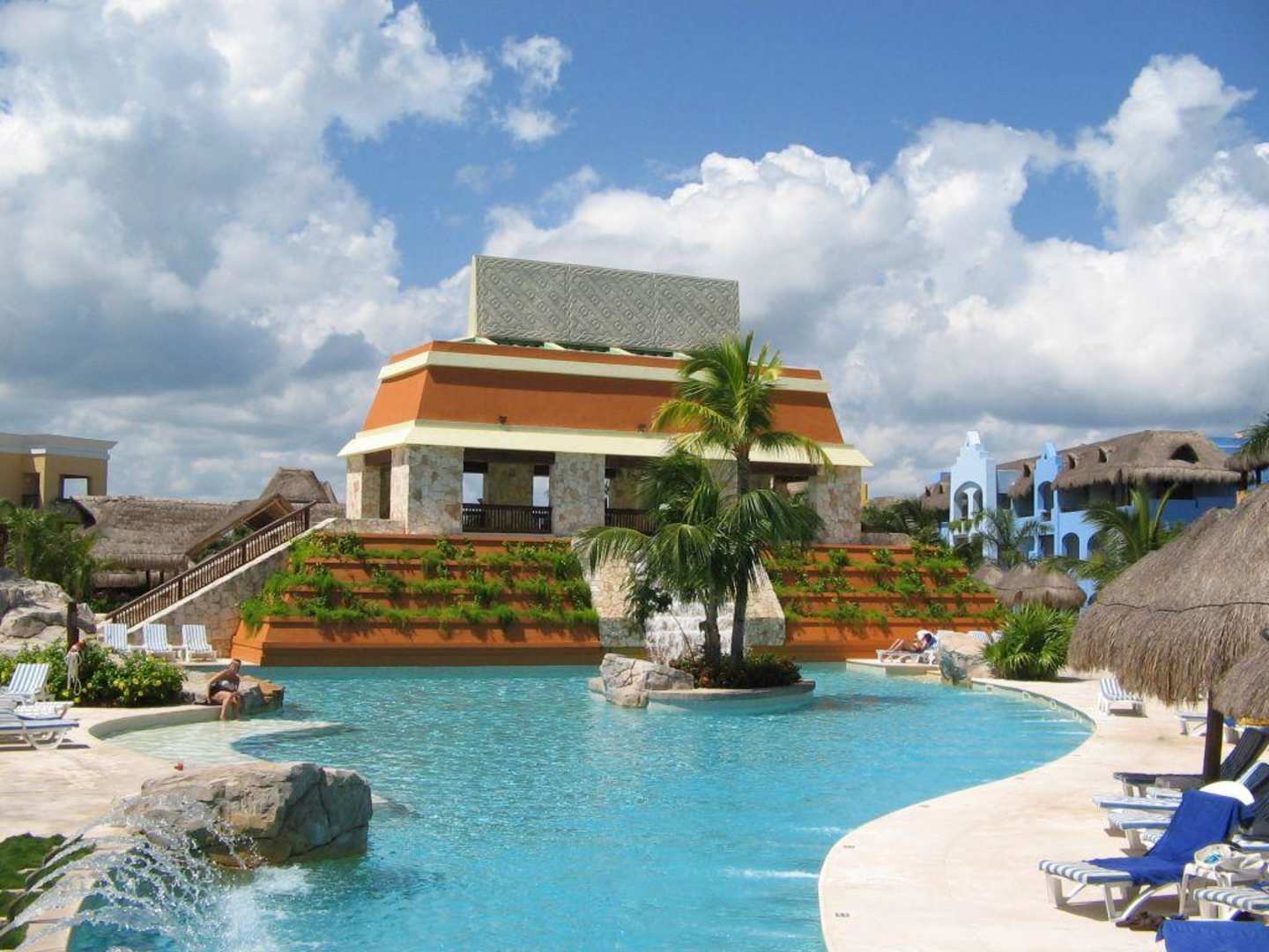 Die andere Seite der Poolanlage mit "Pyramide" und Wasserfall