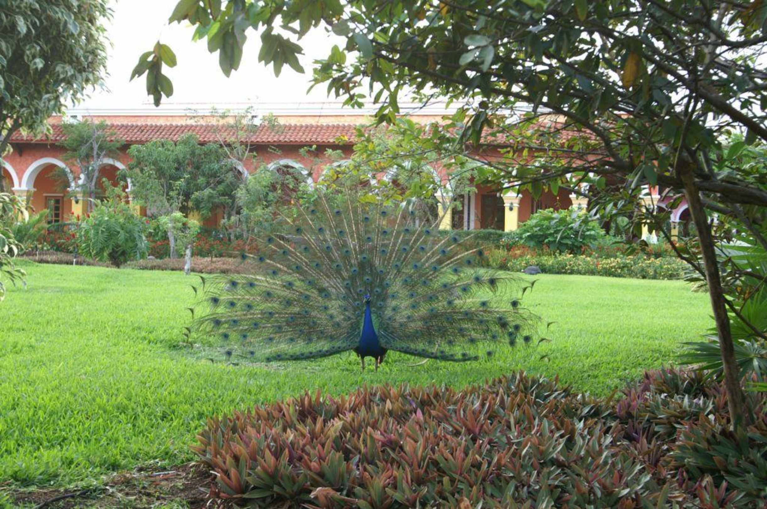 Pfau in den parkähnlichen Hotelgärten