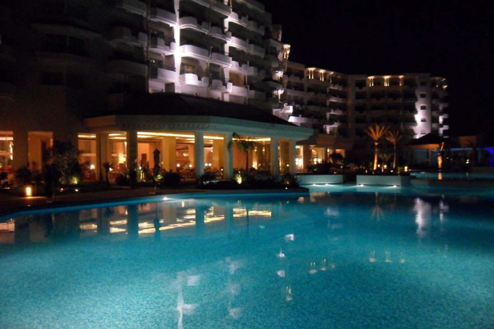Hôtel et piscines le soir