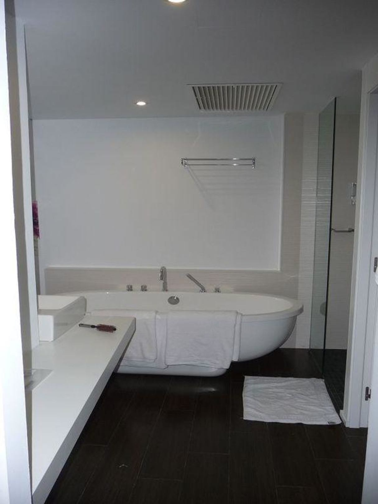 Blick vom Wohnbereich zum Bad
