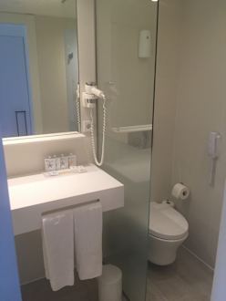 Mit einem Föhn und diversen Hygieneartikeln ausgestattet.