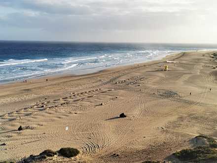 Weitläufiger, langer und breiter Sandstrand direkt vor dem Hotel