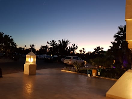 Sonnenuntergang vor dem Hoteleingang