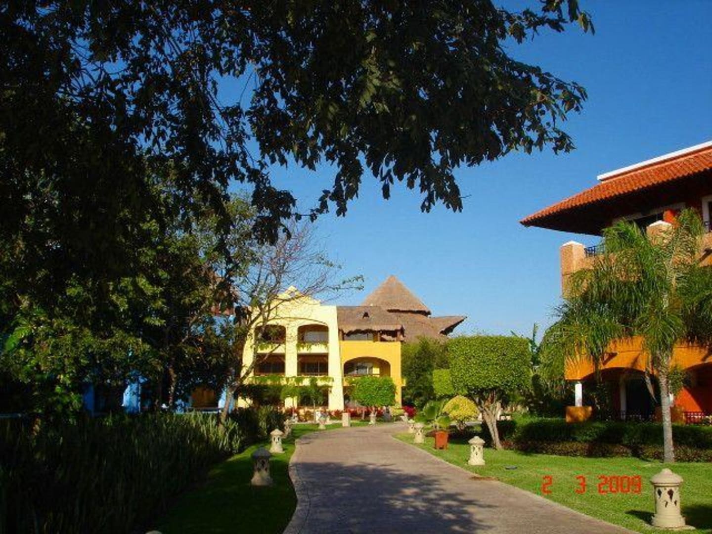 Die "Hauptstraße" des HotelsAuf diesem etwas breiteren Weg befinden sich die Haltestellen der kleinen Bahn, die durch das Hotel fährt.