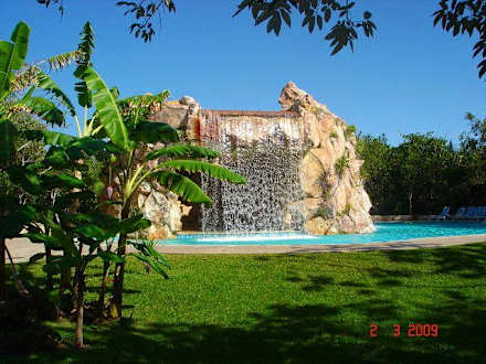 Der Wasserfall in der Poollandschaft
