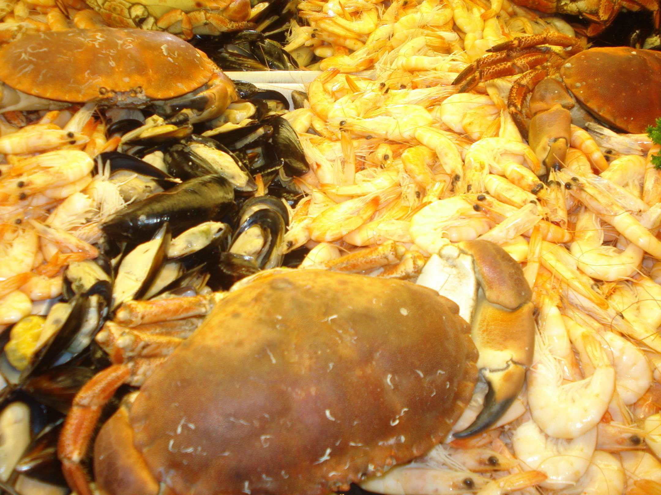Abendbuffet mit Garnelen, Muscheln und Krebsen