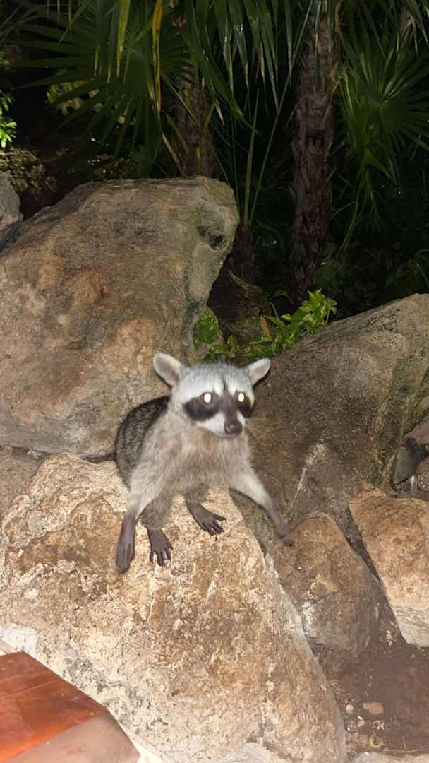 Waschbär am Restaurant. Ob er was essen möchte? :-)