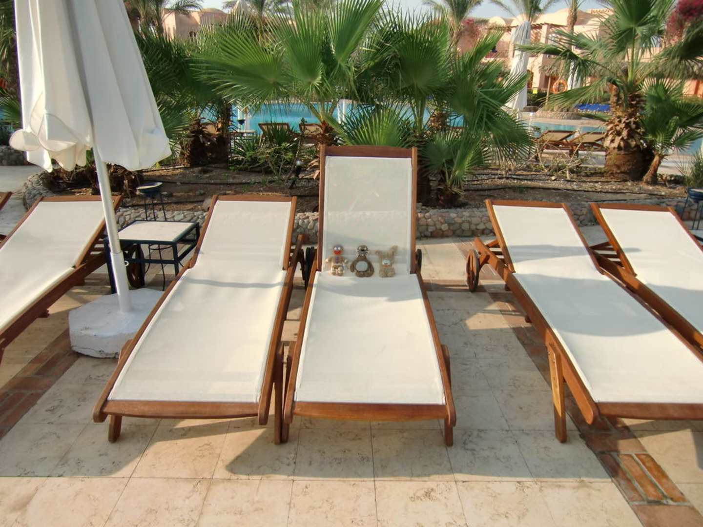 Ein Blick auf die guten Poolliegen mit zeitweise süssen Bewohnern...