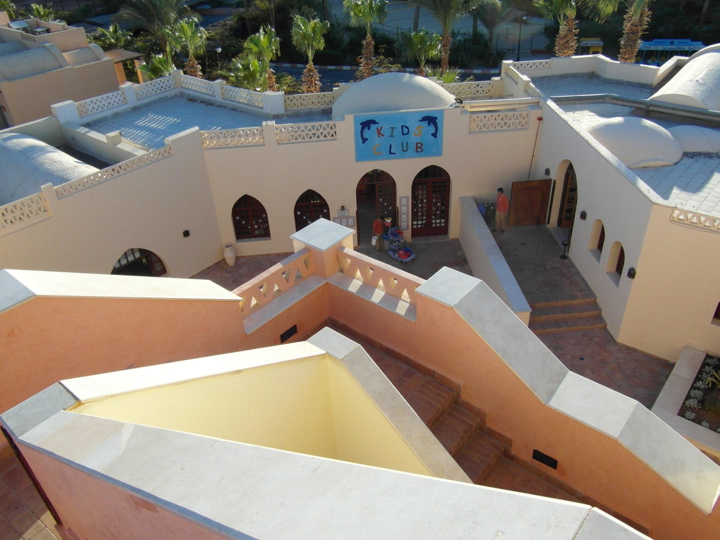 Treppe zum Turm. Blick auf Kidsclub