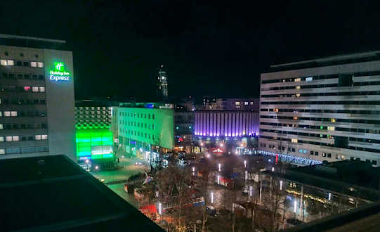 Blick aus dem 7. Stockwerk Richtung Zentrum. Unten kein Auto weit und breit. Das hat mir gefallen.