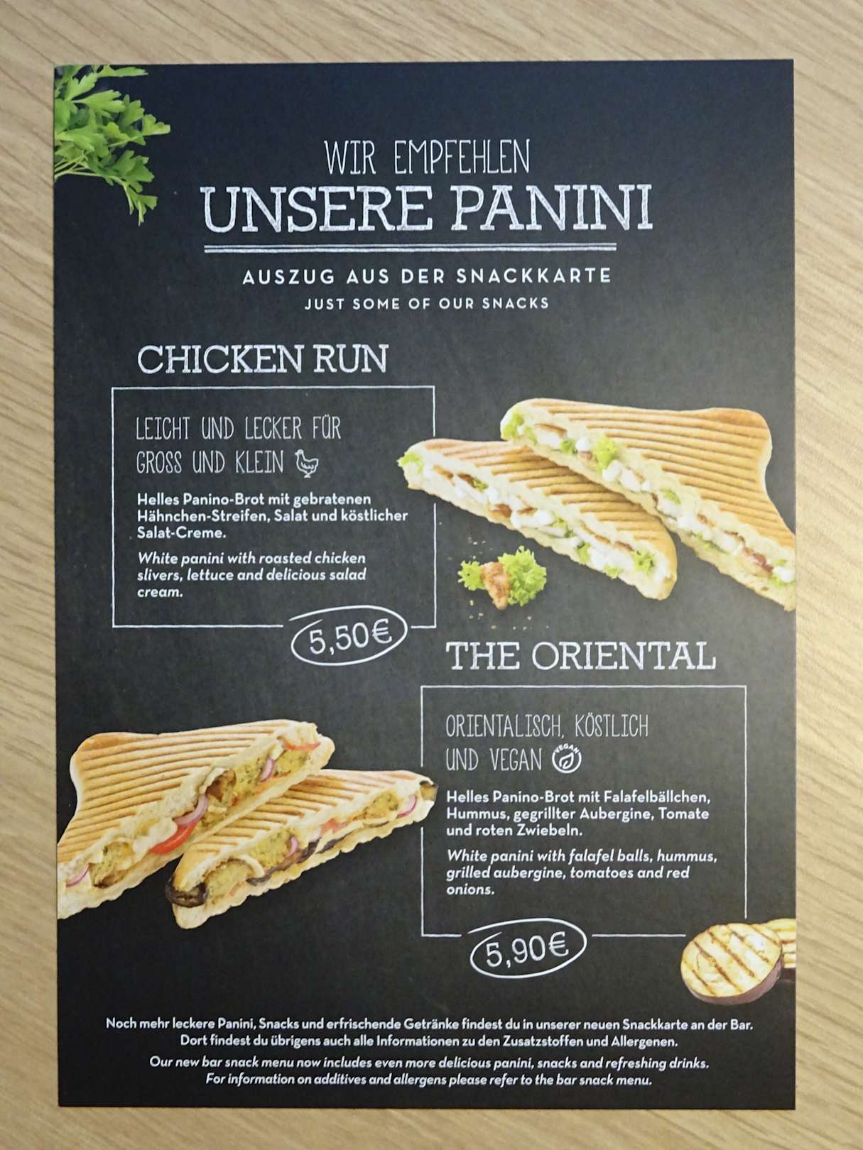 Snacks / Auszug aus Speisekarte