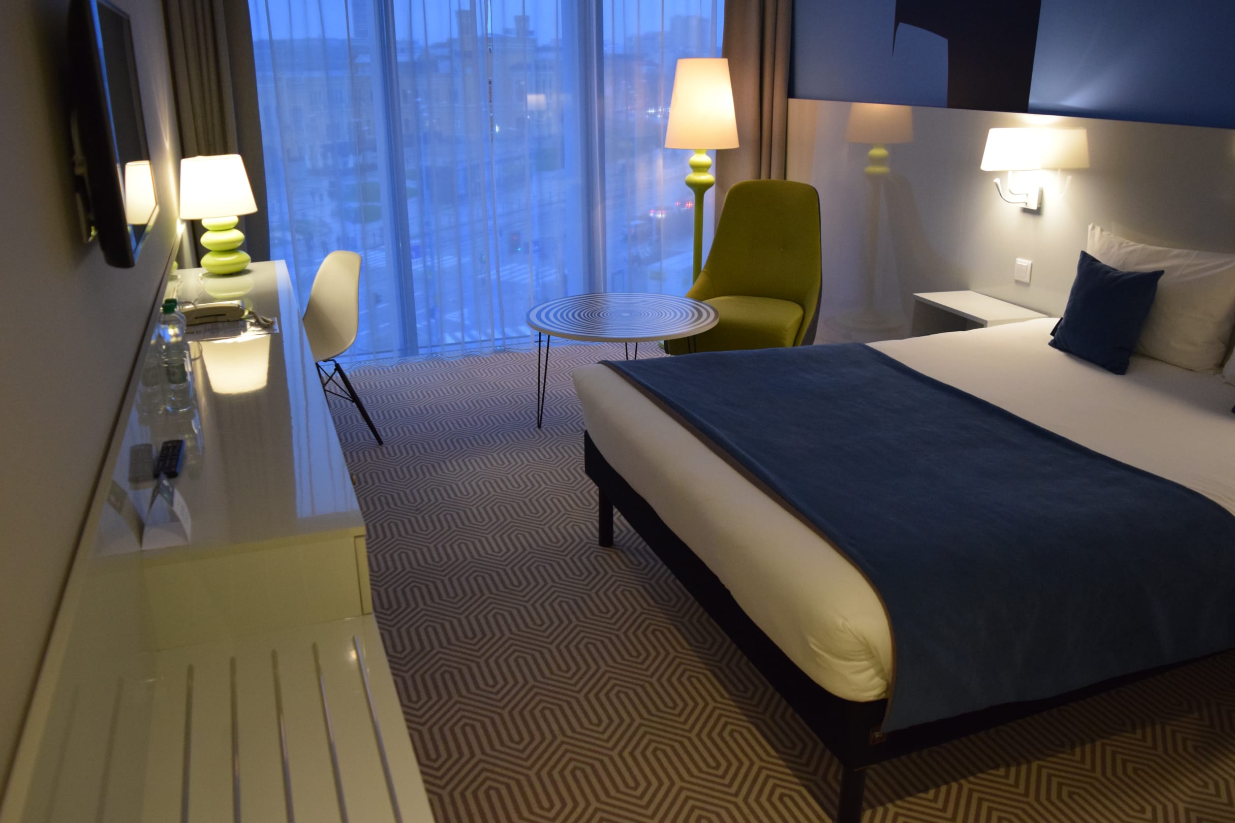 Standard-Doppelzimmer mit Panorama-Fenster und Blick auf denStandard-Doppelzimmer mit Panorama-Fenster und Blick auf den Bahnhof von Breslau...