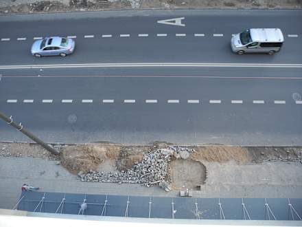 Aktueller Blick von oben zum Eingangsbereich des Hotels Magnus (Ende August 2017)