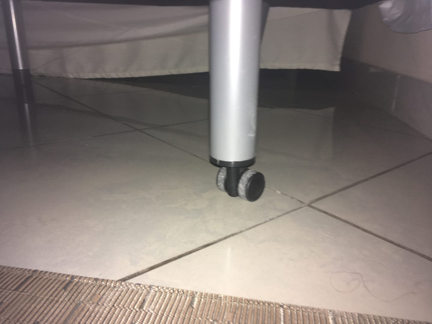 Das Bett auf Rollen, bewegt sich systematisch von der Wand weg.