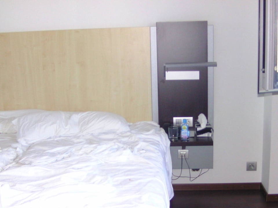 Bett mit rechter Seite vor Fenster mit Ausblick