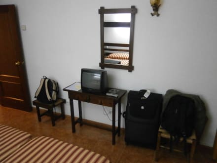 Ablage mit Fernseher gegenüber des Bettes
