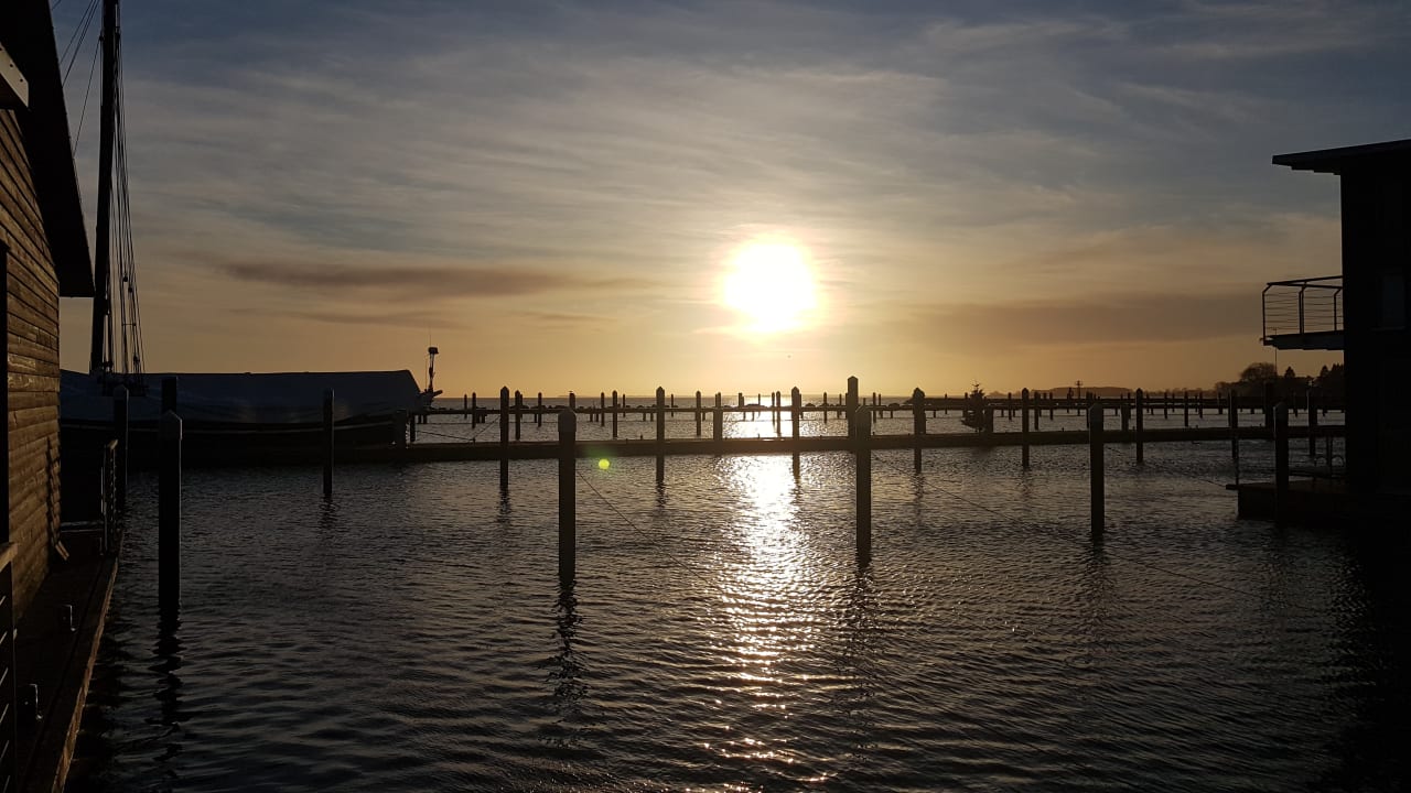 Blick auf den Bodden bei Sonnenuntergang