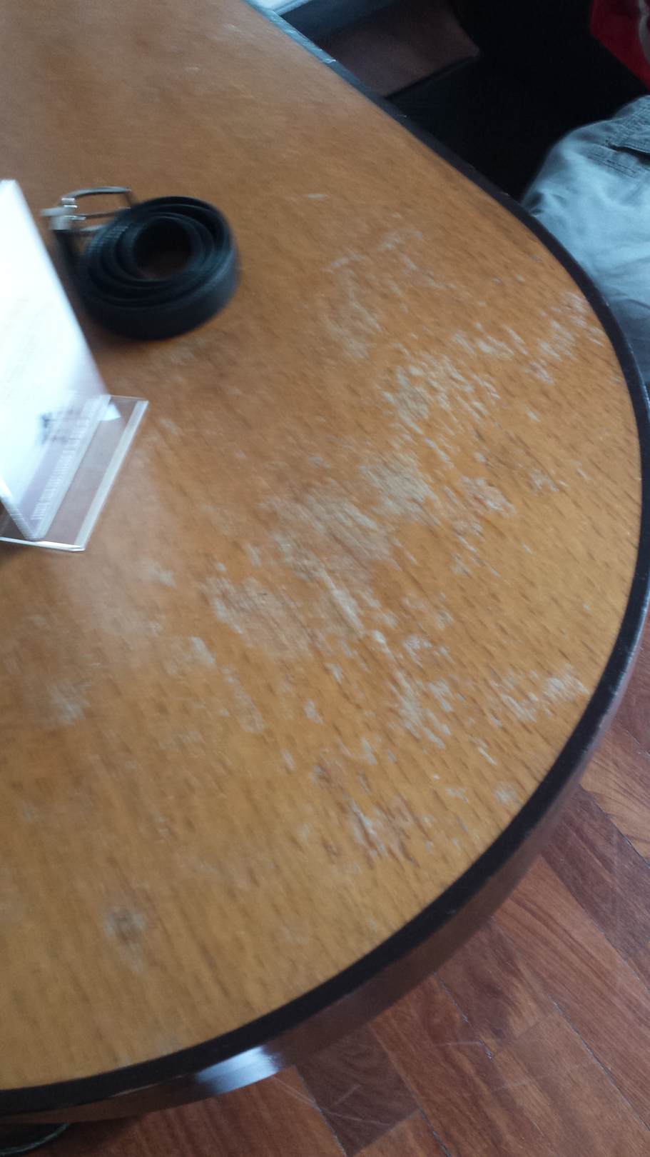 "Schreibtisch" - in diesem abgewohnten Zustand waren alle Möbel. Immerhin, die Klimaanlage funktionierte.