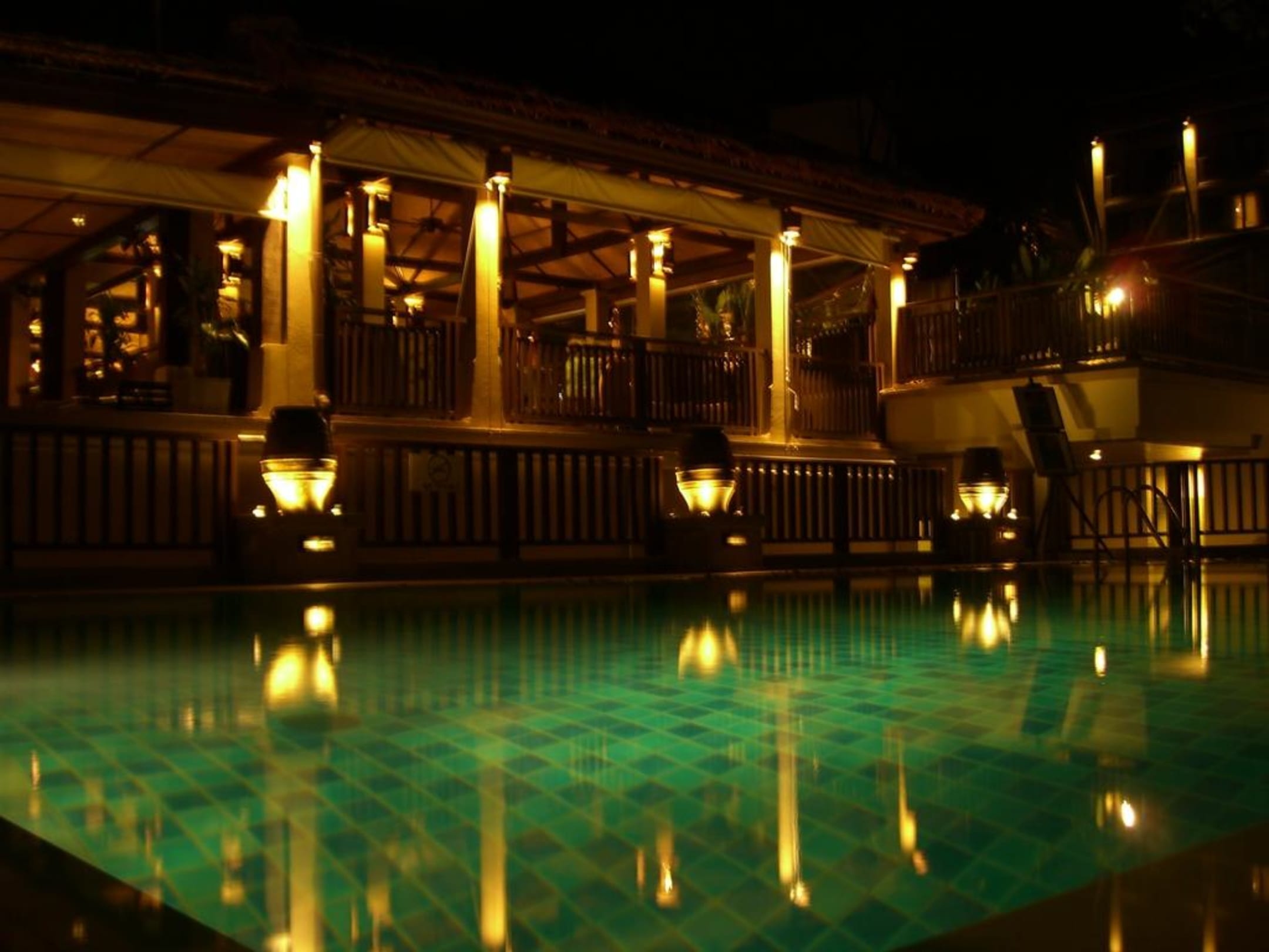 Pool mit Blick auf Tamarind Restaurant