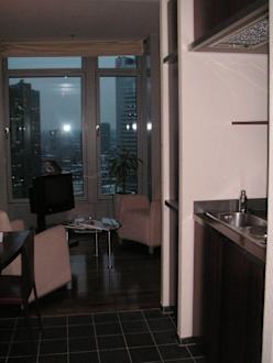 Miniküche und Wohnzimmer
