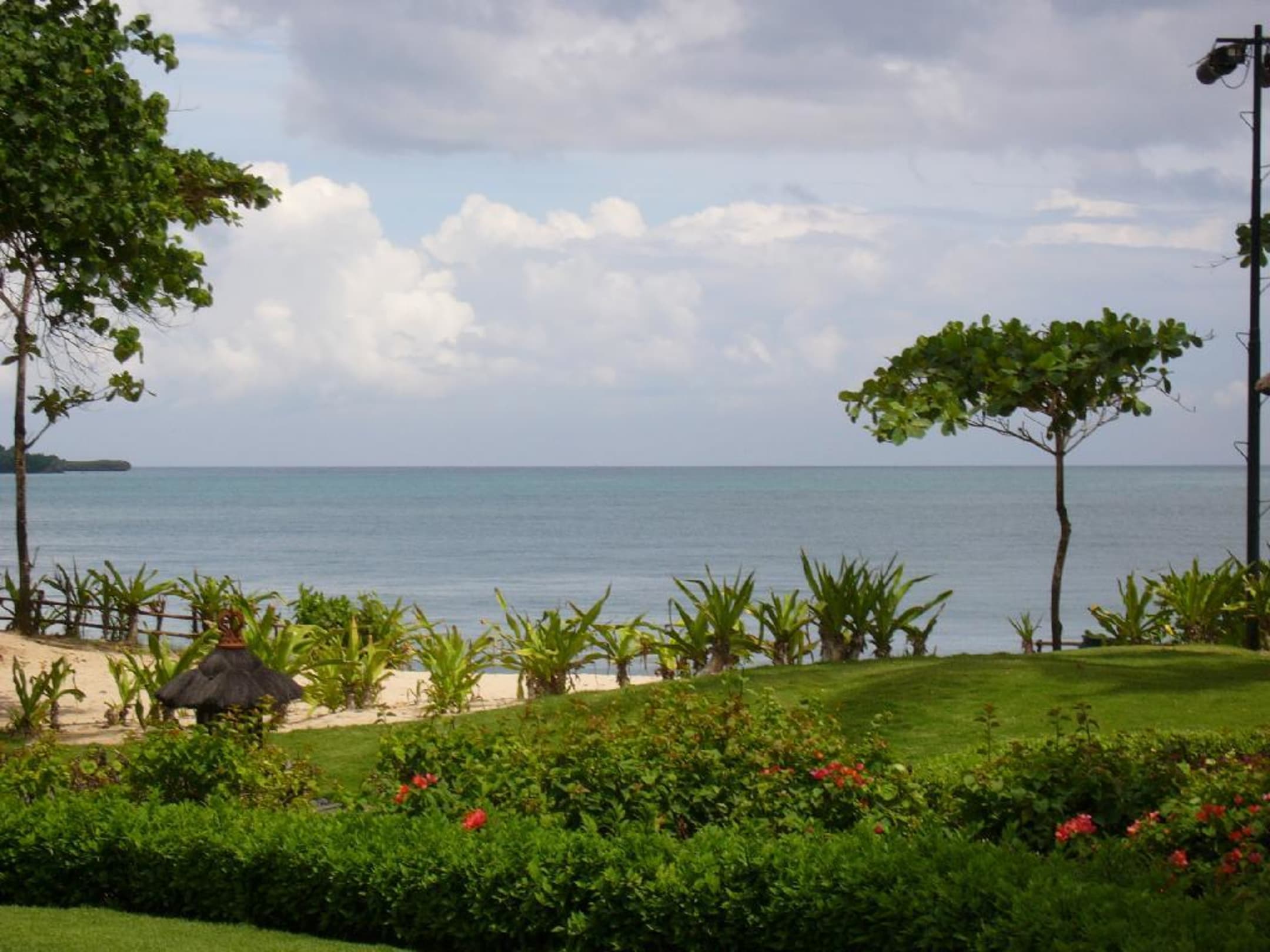 Blick über den Hotelgarten des Interconti Resort aufs Meer