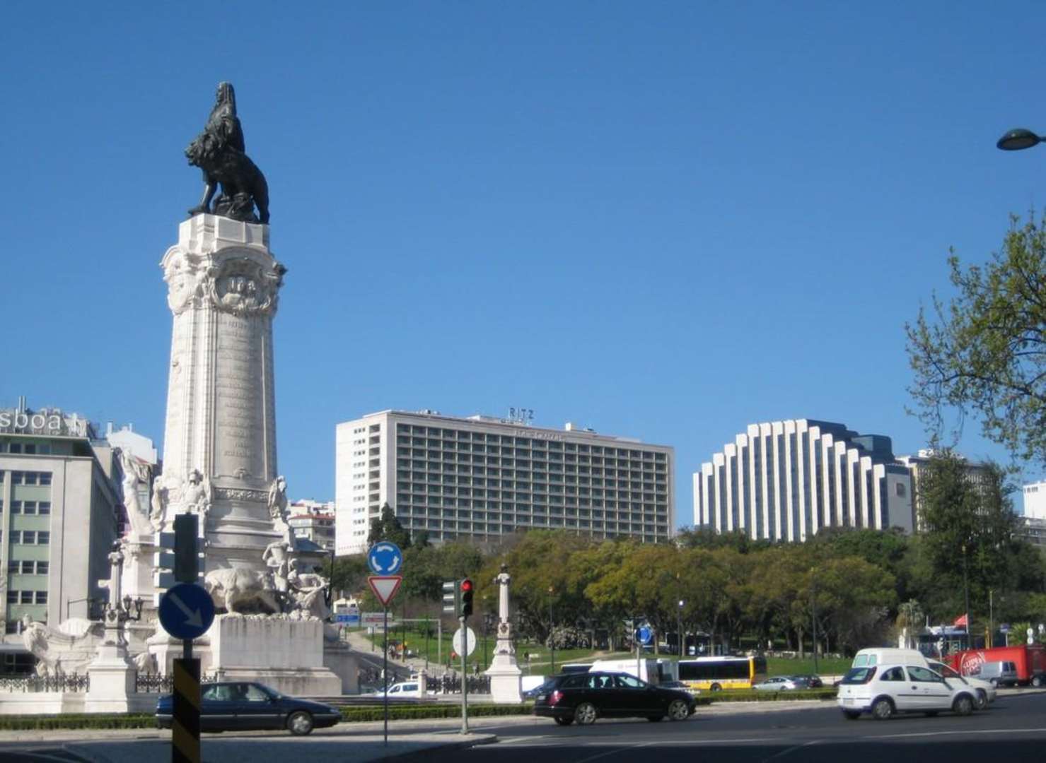 Das Fotos zeigt den Blick auf das Hotel (ganz rechts) vom Platz Marques de Pombal. Links neben dem Tiara befindet sich das Ritz Four Seasons.