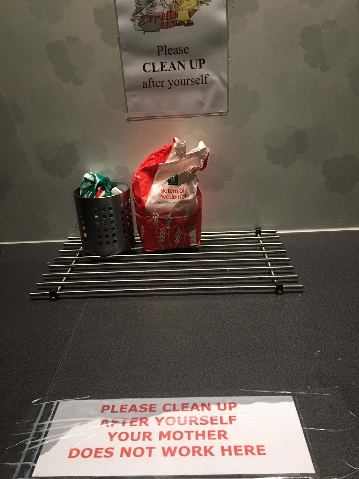 Kitchen with offensive notices to clean up