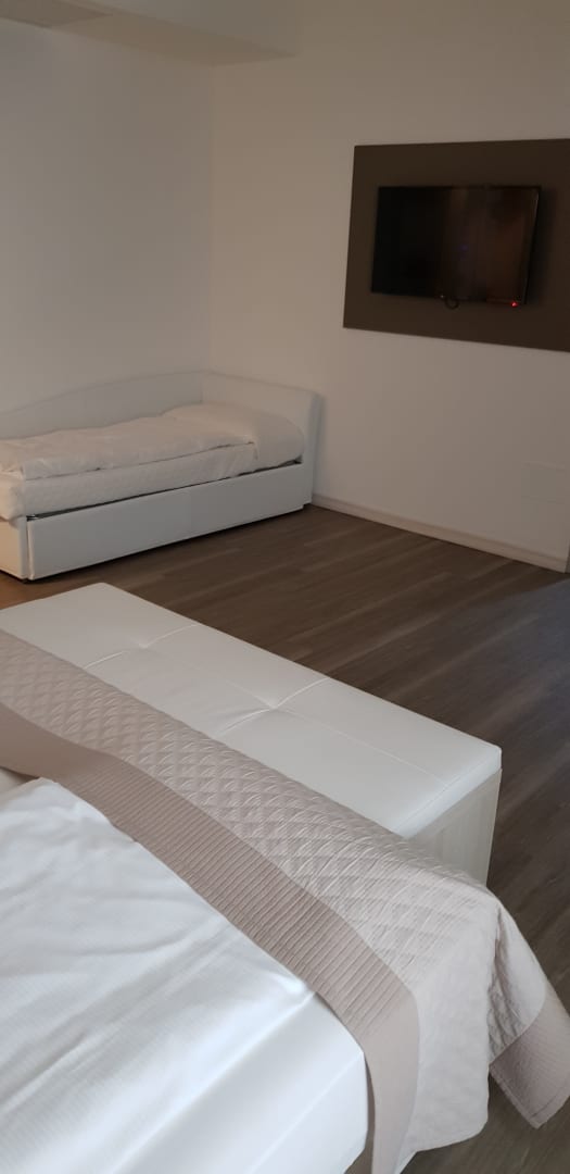 3. Bett, TV an der Wand
