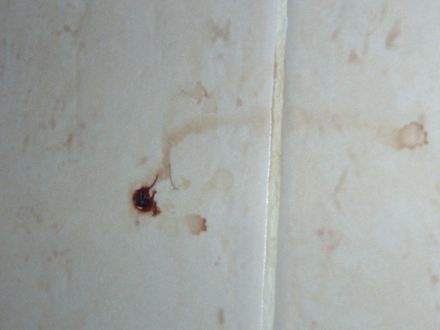 Blutversschmiertes totes Tier in der Dusche