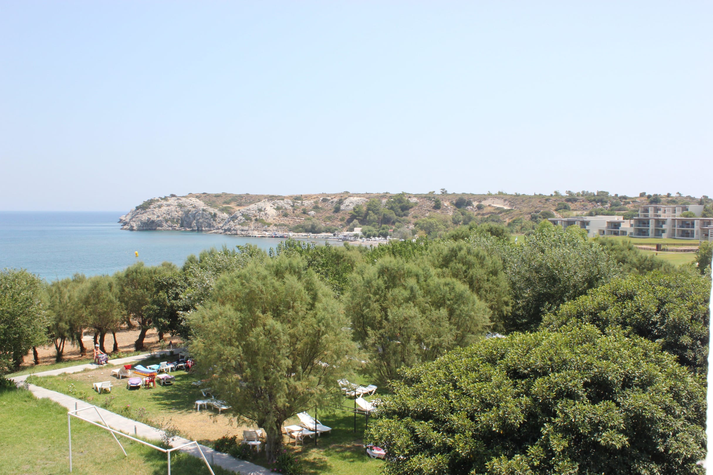 Blick aus dem Hotel auf Garten und Meer