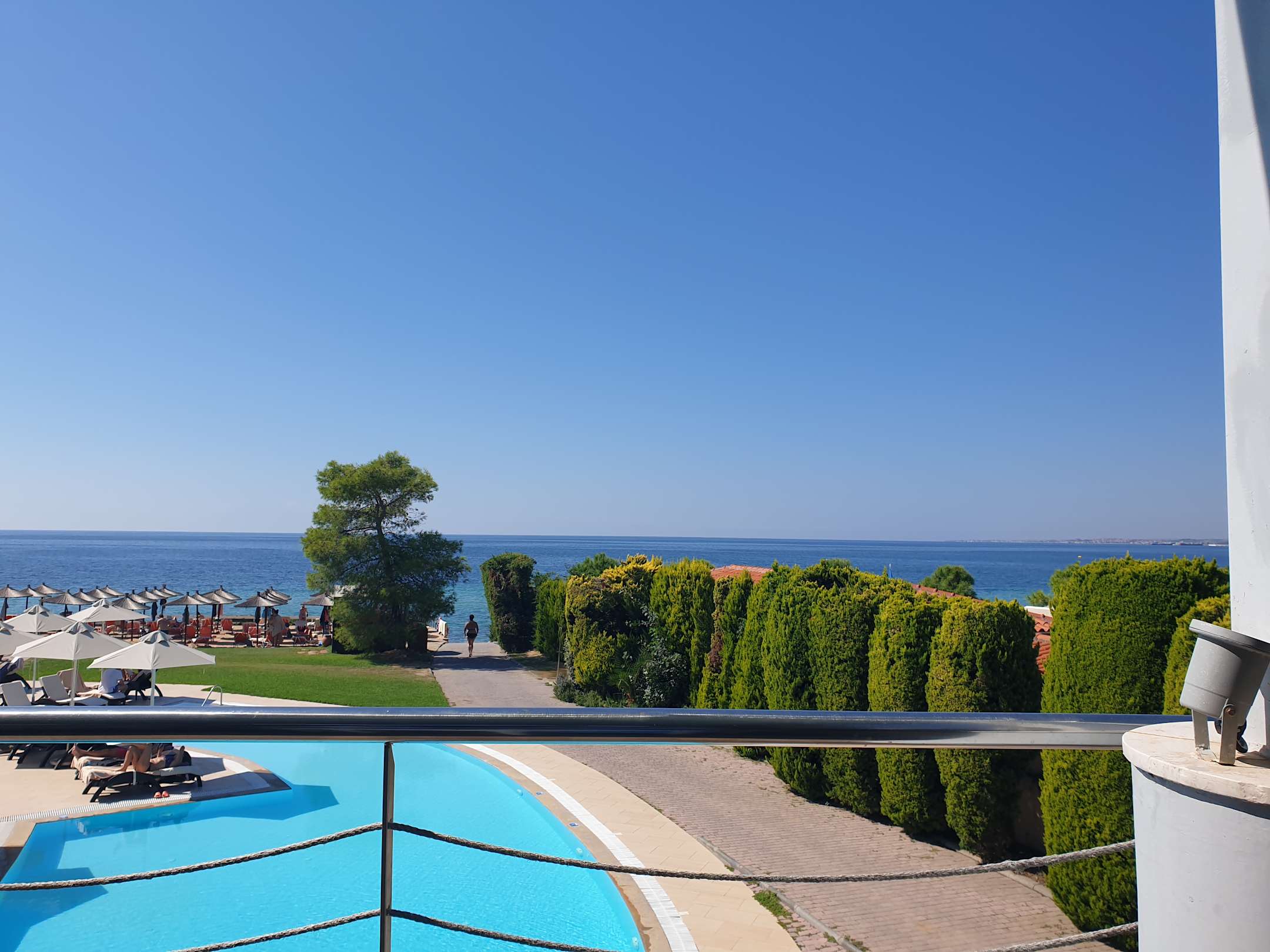 Ausblick vom Restaurant auf die Poolanlage