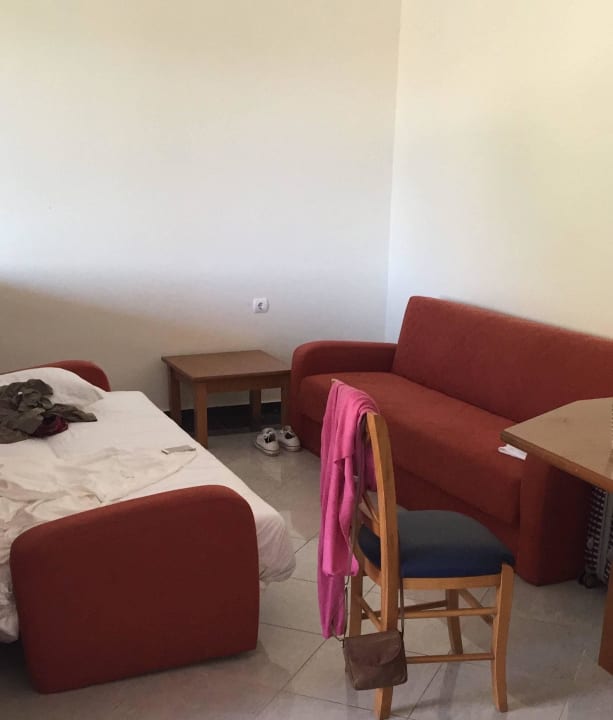 kahle Wände - Möblierung gleicht einem Hostel - hier Zusatzbett