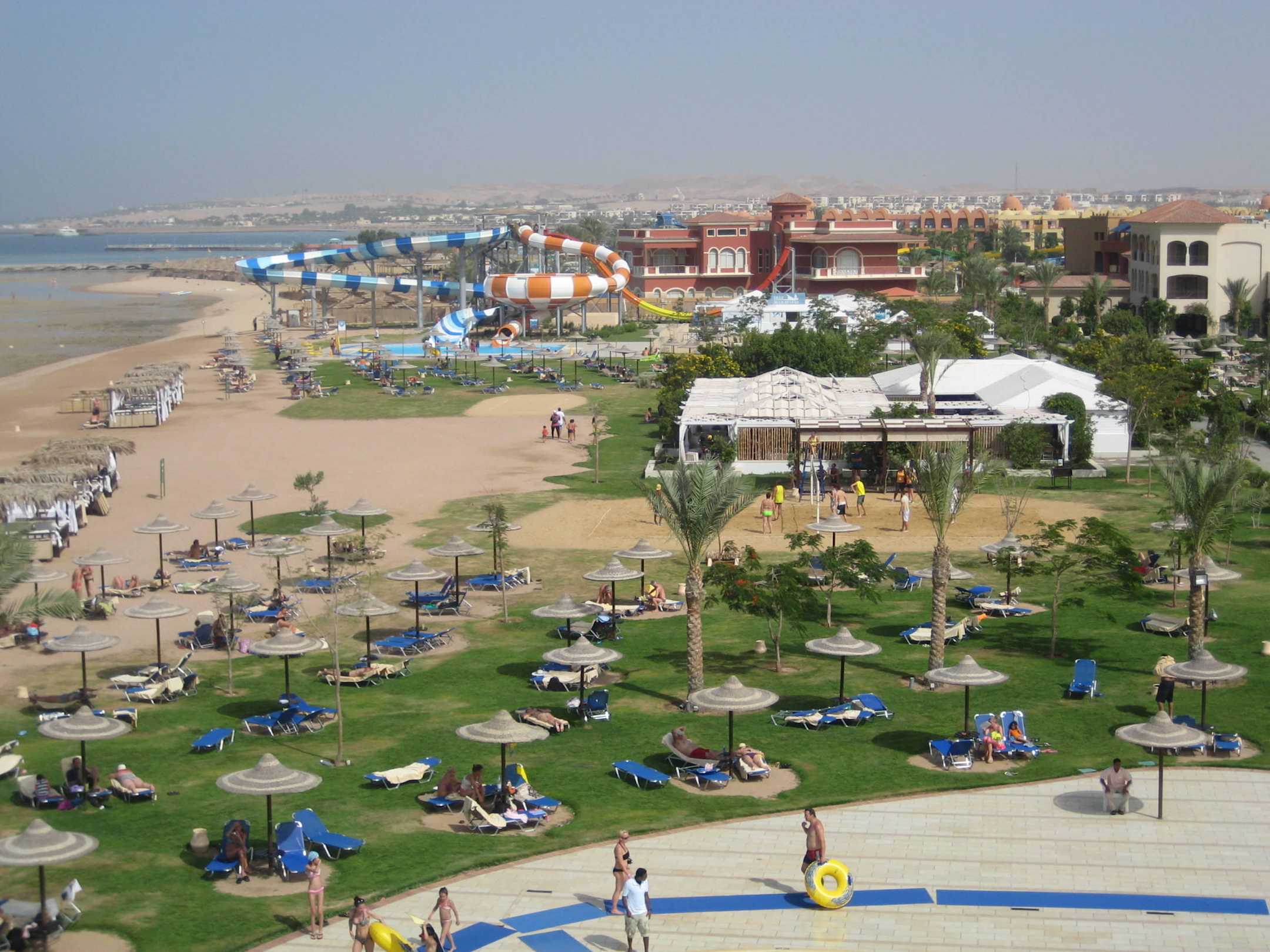Strand mit Rutschen im Hintergrund