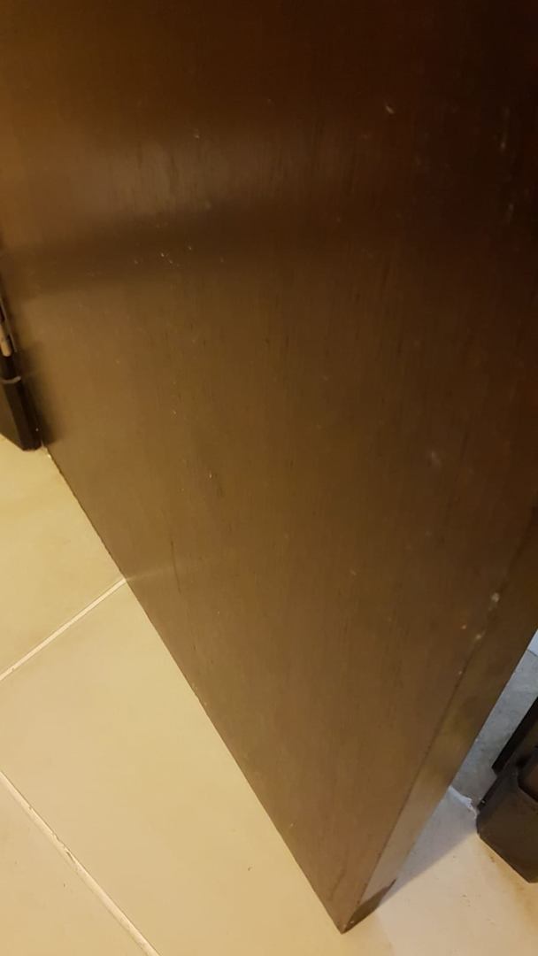 Badtür innen voll mit Flecken