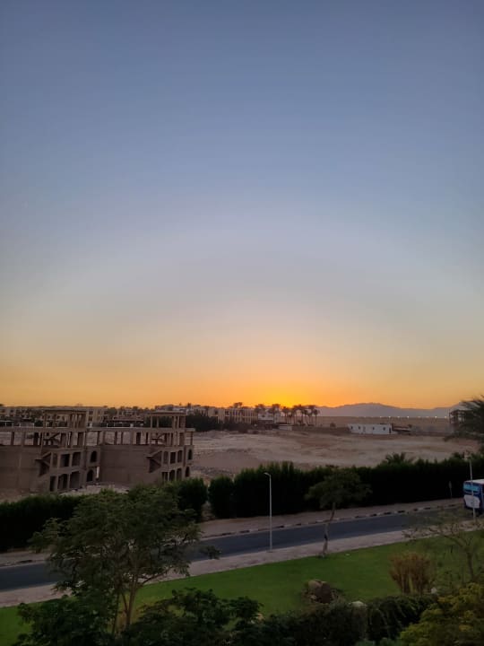 Blick nach hinten raus auf Bauruinen und im Hintergrund den Flughafen