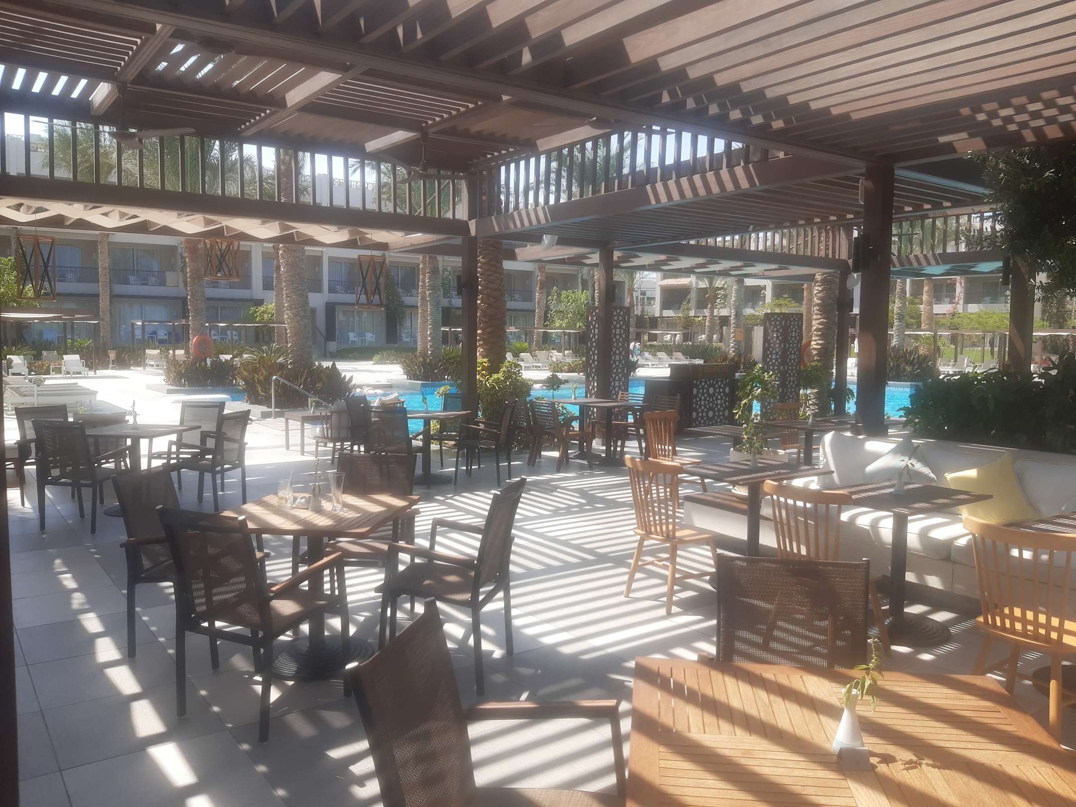 GastroDas Poolrestaurant The Anchor. Auch hier fehlen teilweise Sitzauflagen für die Holzstühle.