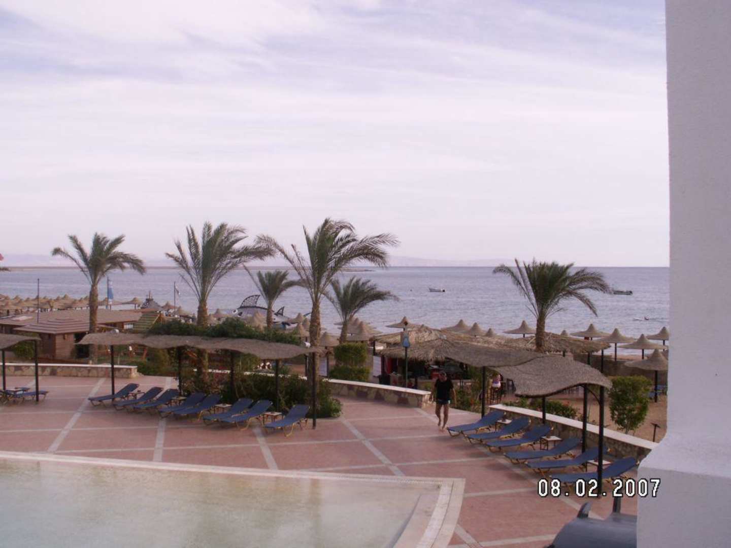 In der Mitte vom Strand kann man das Glasbodenboot sehen