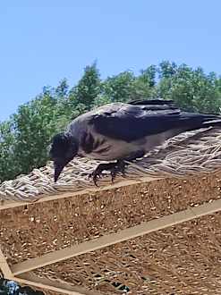 Besuch auf dem Dach vom Sonnenschutz
