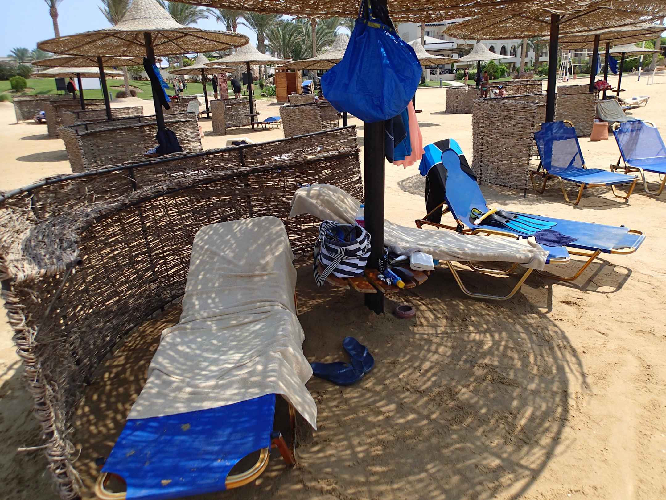 Strand und die etwas unbequemen Liegen