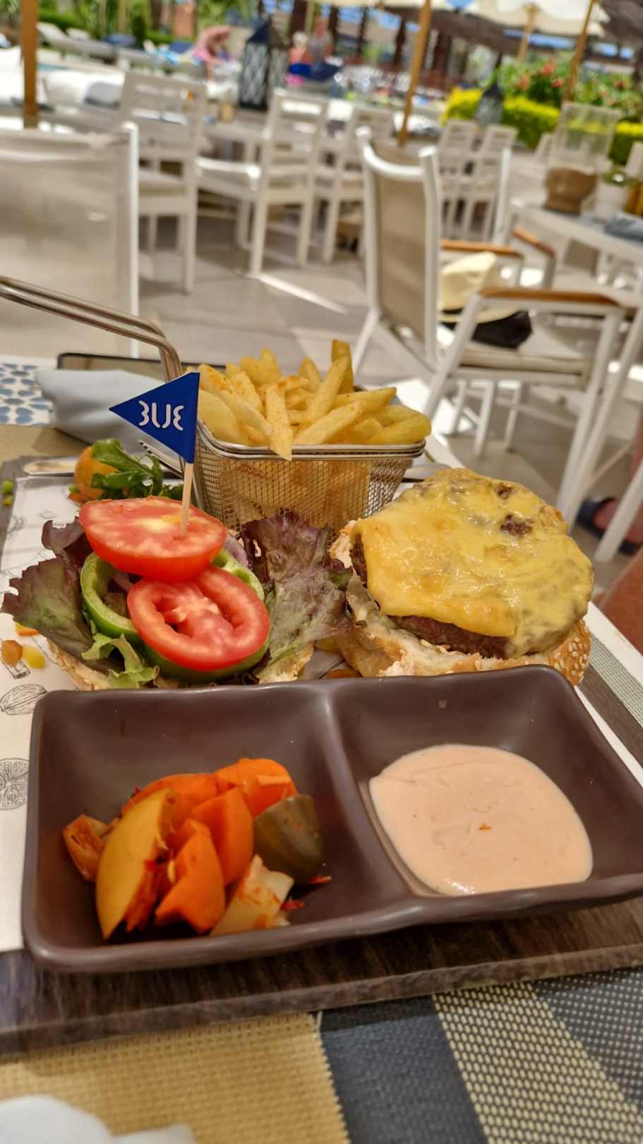 Cheeseburger an der Poolbar zum Mittagessen!