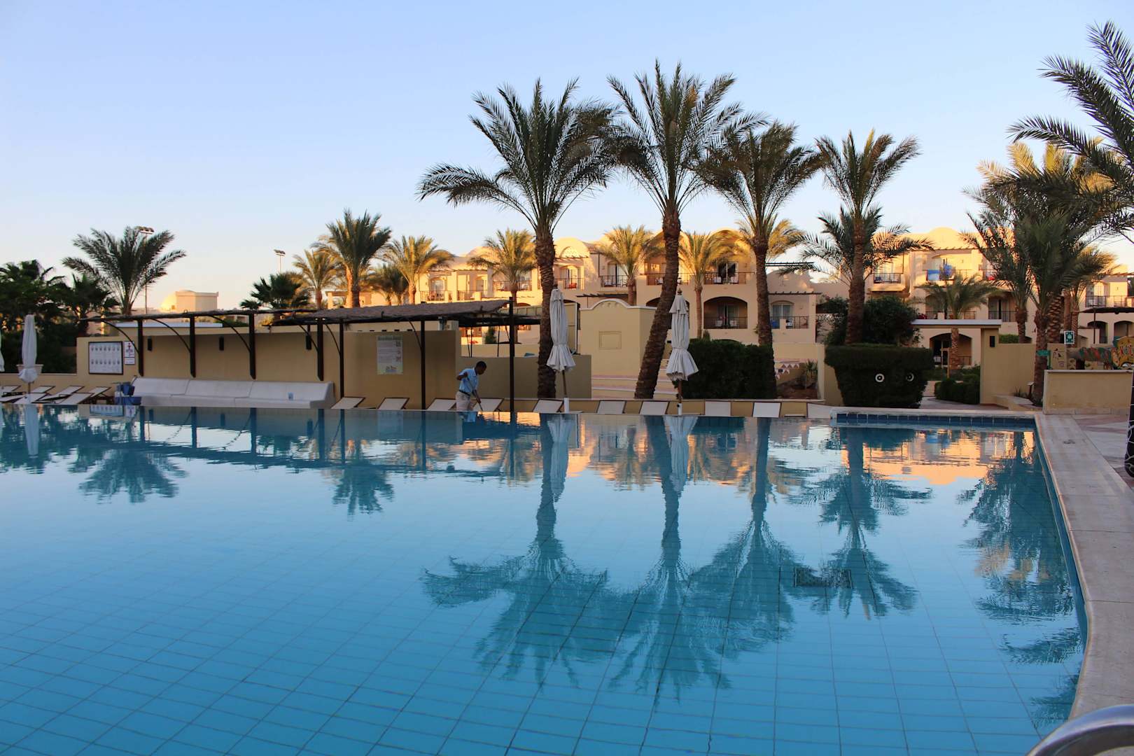Am Pool, kurz vor Sonnenuntergang